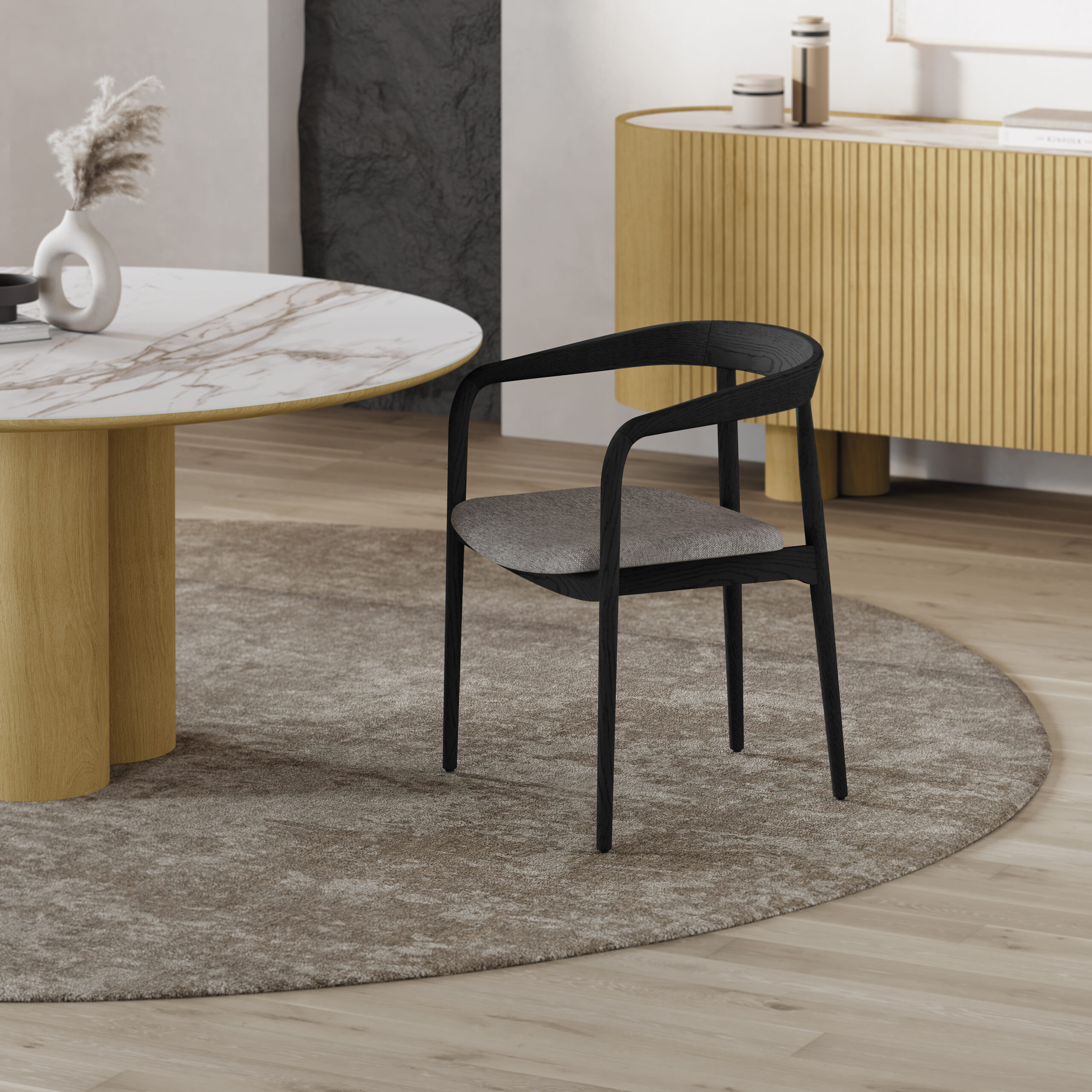 Cadeira NC 02 em madeira e tecido.